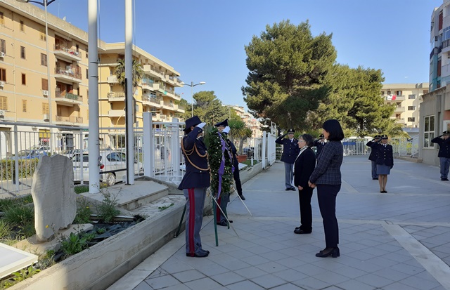 Il Prefetto e il Questore presso la Stele ai Caduti della Polizia (nel rispetto delle norme di distanziamento) hanno deposto una corona di alloro.