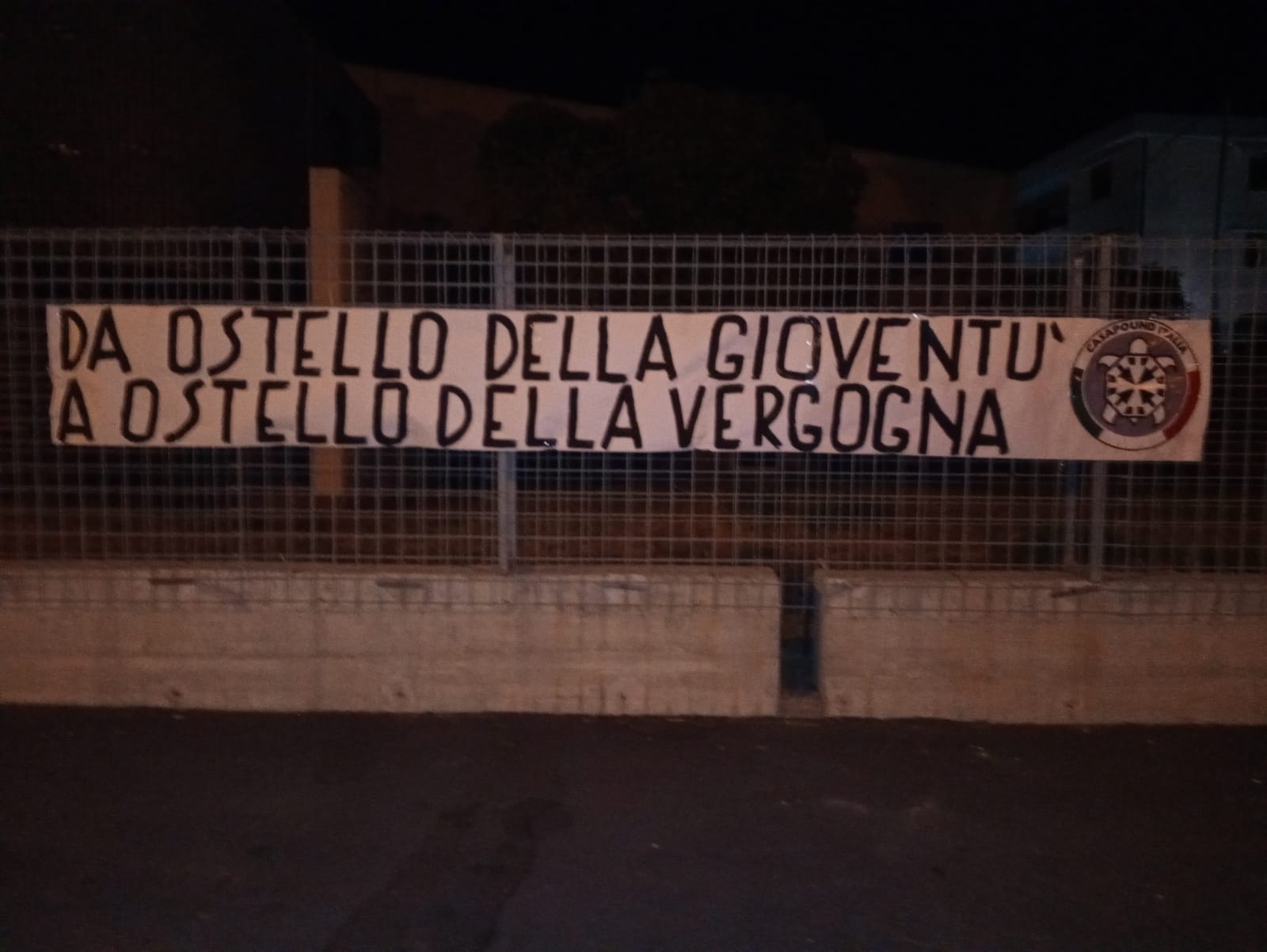 “Da Ostello della gioventù a ostello della vergogna” questo il testo dello striscione apparso ieri sera con cui i militanti di CasaPound Siracusa tornano a farsi sentire, nonostante le rassicurazioni del sindaco, sulla recente ipotesi di destinare la struttura sita in Belvedere a centro d’accoglienza per immigrati.