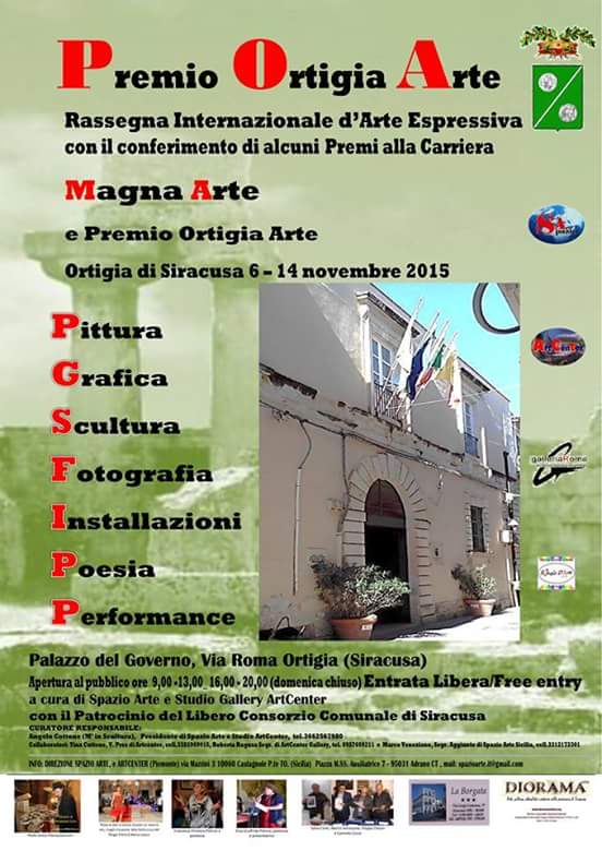 News Siracusa: A Siracusa dal 6 al 14 novembre 2015 si terrà “Premio Ortigia Arte 2015” Rassegna d’Arte Internazionale organizzata dall’Ass. Culturale Spazio Arte del pres.Angelo Cottone, con il patrocinio del Libero Consorzio Comunale di Siracusa, e curato dai collaboratori Tina Cottone vice pres. Spazio Arte Roberta Ragusa di ArtCenter Adrano e Marco Veneziano segretario aggiunto per la Sicilia di Spazio Arte, e quest’anno saranno assegnati anche 8 Premi alla carriera.