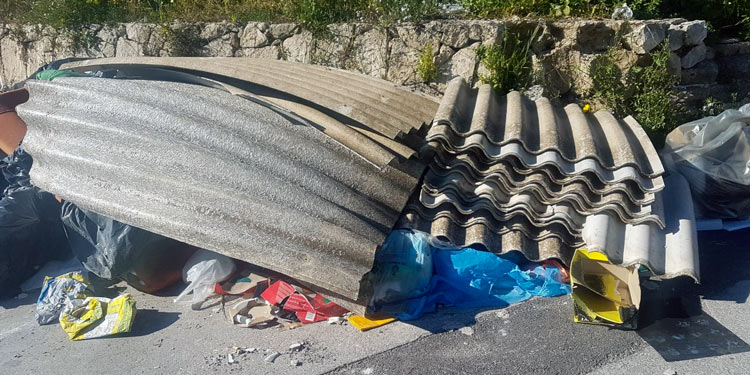 “Purtroppo, sull’arteria in questione – sottolinea Silvia Russoniello – proprio questi ultimi non mancano, anzi abbondano. Infatti, tra i sacchi della spazzatura domestica, probabilmente anche lanciata al volo dalle auto, emergono minacciose tante onduline di fibrocemento, meglio conosciuto come eternit, che se sbriciolate costituiscono un pericolo per la salute di chi viene a contatto con le polveri prodotte”.