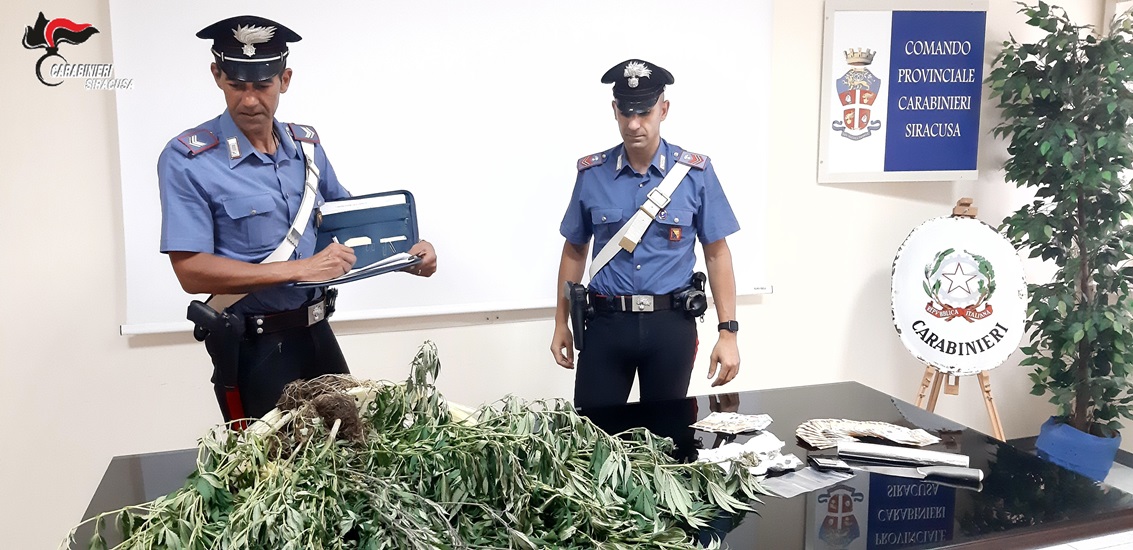 I Carabinieri della Sezione Operativa della Compagnia di Siracusa, nel corso di un servizio di controllo del territorio, hanno arrestato in flagranza di reato i fratelli P. V. e P. M., classe 1993 e classe 1990, uno con precedenti di polizia e l’altro pregiudicato, per detenzione ai fini di spaccio e coltivazione di sostanze stupefacenti.