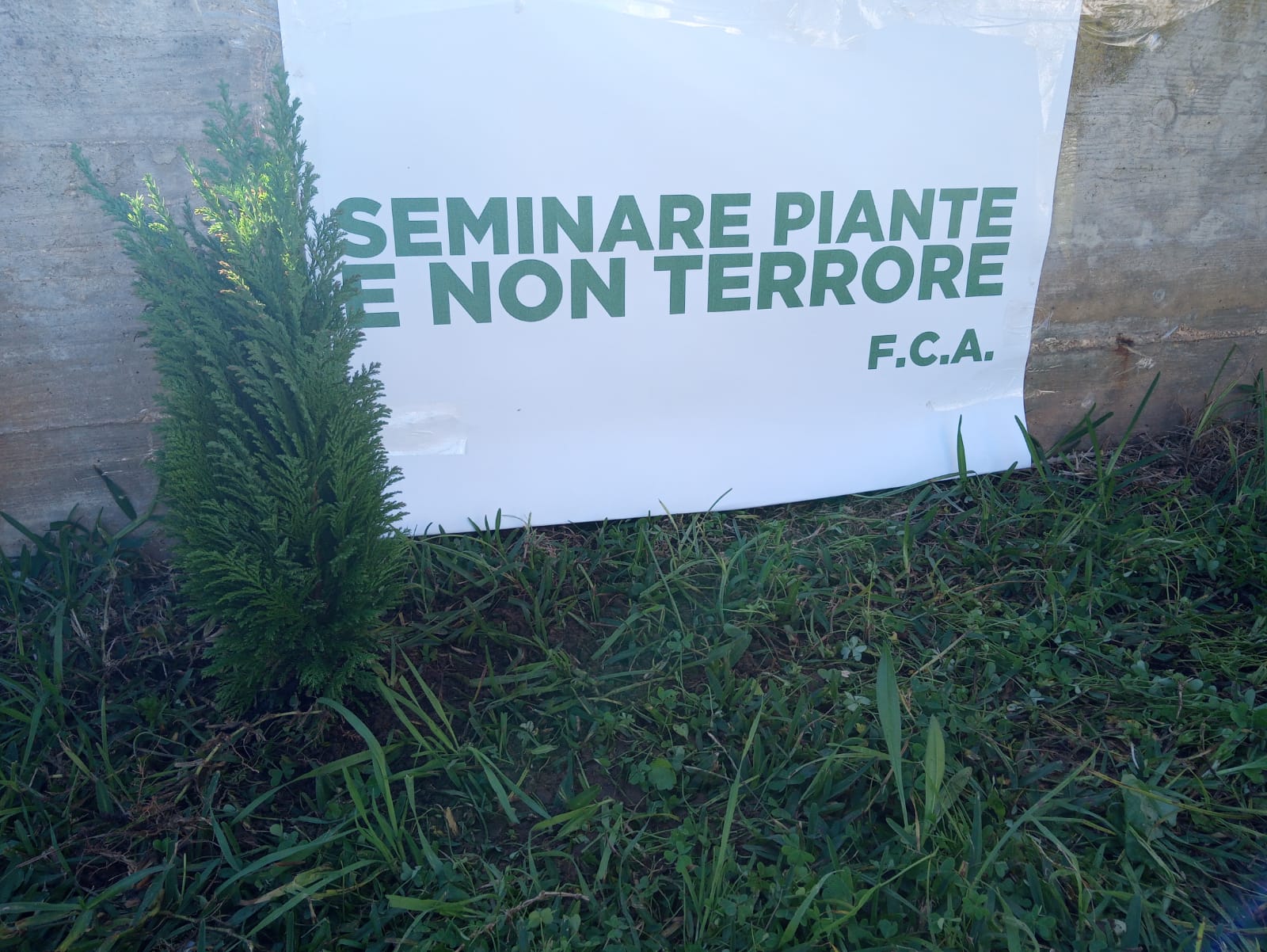 Nonostante il particolare momento per l’Italia, costretta a un nuovo lockdown, gli attivisti della FCA hanno voluto “ricordare agli esponenti dell’Intellighenzia nostrana che è estremamente controproducente fiaccare l’animo degli italiani seminando paura e attuando terrorismo psicologico nei loro confronti, affiggendo in contemporanea uno striscione che recita: Seminare piante e non terrore”.