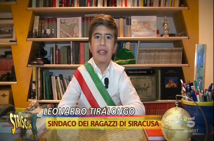 News. Terzo servizio sul tg satirico “Striscia la Notizia” per Leonardo Tiralongo, Sindaco dei ragazzi della città di Siracusa, che nella rubrica “ambiente e ciovani” è tornato a parlare di inquinamento e delle proprietà benefiche della frutta e verdura che cresce in terreni inquinati.