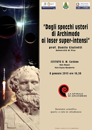 News Siracusa: avrà luogo giovedì 8 alle ore 16.30 presso l’aula magna del Liceo Scientifico “O. M. Corbino” il seminario di divulgazione scientifica “Dagli specchi ustori di Archimede ai laser super-intensi” tenuto dal professore Danilo Giulietti, fisico dell’Università di Pisa.