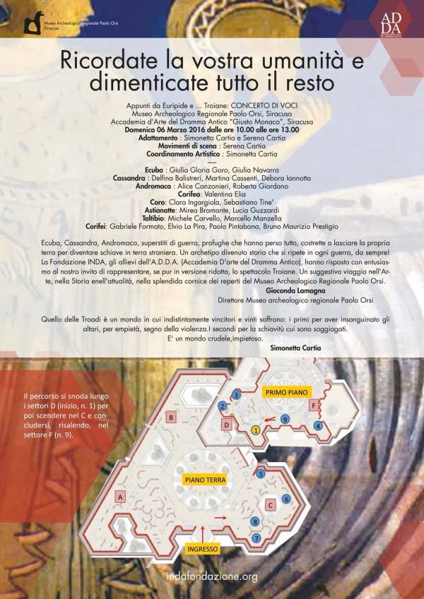 News Siracusa: sarà la splendida e suggestiva cornice del Museo archeologico regionale “Paolo Orsi” di Siracusa ad ospitare lo spettacolo “Appunti di Euripide e…Troiane” un adattamento di Simonetta e Serena Cartia con gli allievi del secondo anno dell’Accademia d’arte del dramma antico “Giusto Monaco”.