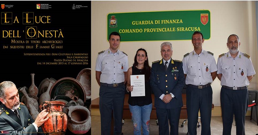 In questi anni un importante valore sociale lo ha avuto la mostra itinerante “La Luce dell’Onestà”, iniziativa culturale incentrata sulla legalità che si propone di evidenziare alla collettività il contributo fornito dalla Guardia di Finanza nel recupero di patrimonio archeologico illecitamente detenuto che ha visto esposti numerosi reperti nei vari comuni della provincia aretusea ed è stata apprezzata non solo dalla collettività, con le numerose visite ai luoghi dell’esposizione, ma è stata anche oggetto di studi universitari.