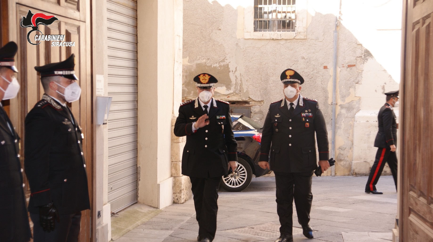 Il Generale Cavallo è stato ricevuto dal Comandante Provinciale, Col. Giovanni Tamborrino presso la sede del Comando in viale Tica ed ha effettuato una preliminare visita, portandosi poi insieme al Comandante Provinciale nello storico chiostro sede della Stazione Carabinieri di Siracusa Ortigia, ove ha potuto incontrare, nell’ampio cortile della caserma, all’aperto ed in condizioni di assoluto rispetto delle norme di prevenzione da pandemia COVID-19, una rappresentanza di personale dei Reparti Territoriali dipendenti dal Comando Provinciale (Stazioni, Tenenza, Nuclei Operativi e Radiomobili, Nucleo Investigativo ed Informativo ed Ufficio Comando) e di quelli Speciali e di Polizia Militare dell’Arma operanti in provincia (Nucleo Ispettorato Lavoro, Sezione Tutela Patrimonio Culturale di Siracusa, Sezione di P.G. presso la Procura di Siracusa, Compagnia CC Aeronautica Militare di Sigonella e Stazione CC Marina Militare di Augusta).