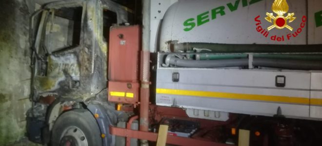 News Siracusa. L’incendio di un camion espurgo. nell’area di un parcheggio privato in via Necropoli Grotticelle di fronte al consorzio agrario, ha richiesto nella notte il tempestivo intervento dei Vigili del Fuoco della città.