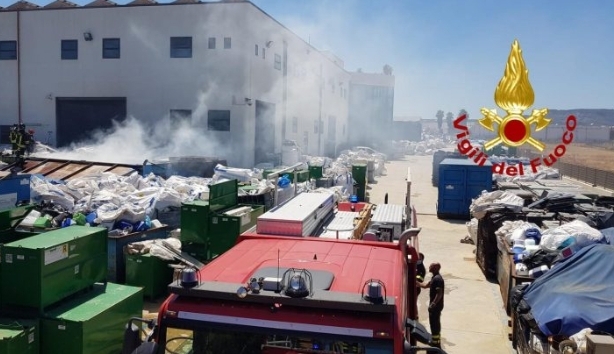 Fiamme, questo pomeriggio, in un magazzino di materiale plastico da riciclare sito in contrada Stentinello.