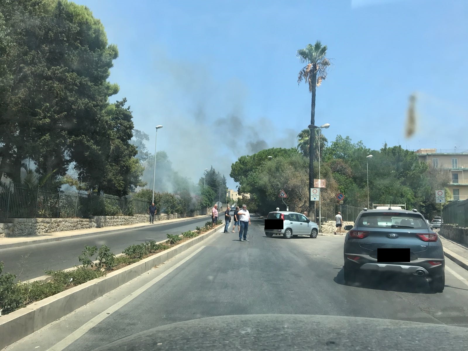 Il fumo ha invaso la strada causando grande difficoltà alla viabilità.