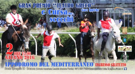 News Siracusa: le “Curse che Scecchi” ritornano a vivacizzare, insieme al galoppo di qualità, con l’atteso Handicap Principale C “Premio Teatro Greco”, il pomeriggio di Giovedì 02 Giugno all’Ippodromo del Mediterraneo. Usi, costumi e tradizioni del territorio, andranno in scena attraverso un evento che coniuga le tradizionali corse degli asini, montati senza finimenti, dai fantini, cavalieri e addetti ippici, con carretti siciliani, ambientazioni in abiti d’epoca e antichi mestieri. Il tutto offerto tra le sette corse di galoppo, in programma dalle ore 15.00.