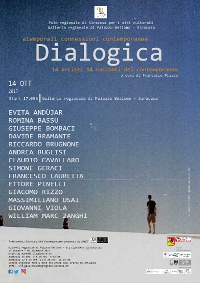 Opere pittoriche, progetti fotografici e video disegnano un percorso espositivo parallelo a quello della Galleria, con incursioni nel sociale e nella più vicina attualità. Gli artisti di Dialogica sono: Evita Andùiar, Romina Bassu, Giuseppe Bombaci, Davide Bramante, Riccardo Brugnone, Andrea Buglisi, Claudio Cavallaro, Simone Geraci, Francesco Lauretta, Ettore Pinelli, Giacomo Rizzo, Massimiliano Usai, Giovanni Viola, William Marc Zanghi.