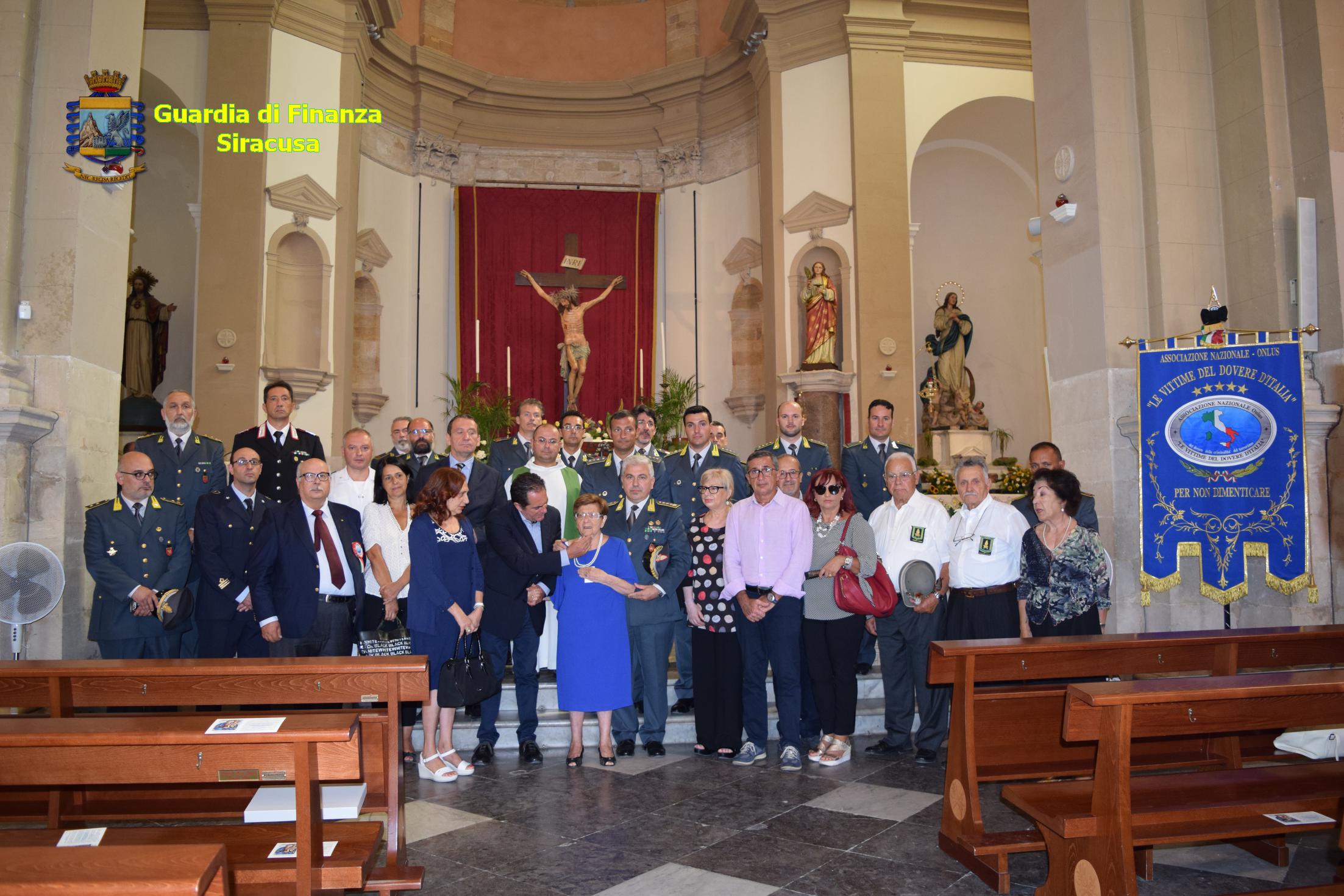 Alla Santa Messa in suffragio, officiata da Fra’ Daniele, sono intervenuti il Prefetto di Siracusa S.E. Giuseppe Castaldo, il Questore Gabriella Ioppolo, rappresentante delle Forze dell’Ordine, della Capitaneria di Porto e dell’Aeronautica Militare, il Presidente dell’Associazione Nazionale Onlus “Le Vittime del Dovere”, Cavaliere Andrea Fasanella e una rappresentanza di finanzieri di ogni ordine e grado del Comando Provinciale di Siracusa e gli appartenenti all’Associazione Nazionale Finanzieri d’Italia.