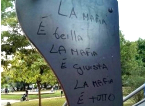 News Siracusa : “la mafia è bella, la mafia è giusta, la mafia è tutto”. Una scritta che non lascia indifferenti a chi la legge. Un gesto spregiudicato di inciviltà compiuto nel più insolito dei luoghi, un parco giochi, quello di piazza Adda. Uno scatto, che adesso gira sui social, ha immortalato l’osceno componimento.