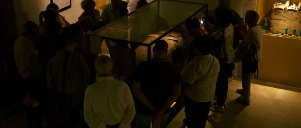 In considerazione dell’ampio successo riscontrato dalle visite guidate alla mostra e il grande coinvolgimento del pubblico, tutte le sere di agosto alle ore 20:00 sarà possibile visitare la mostra accompagnati dai restauratori che stanno svolgendo l’intervento di restauro sui sarcofagi di Deir el-Bahari!