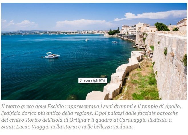 News Siracusa: “Il teatro greco dove Eschilo rappresentava i suoi drammi e il tempio di Apollo, l’edificio dorico più antico della regione. E poi palazzi dalle facciate barocche del centro storico dell’isola di Ortigia e il quadro di Caravaggio dedicato a Santa Lucia. Viaggio nella storia e nelle bellezza siciliana”. Dichiara la giornalista Arianna Caravaglia in un articolo della guida 24 de “Il Sole 24 ore”, che promuove a pieni voti la città aretusea.