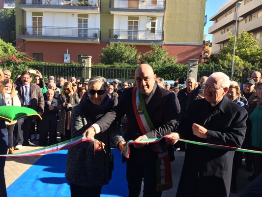 Presente il sindaco, Giancarlo Garozzo, che assieme alla moglie di Pino Corso, Adriana Pace, ha tagliato il nastro, e assieme alla figlie Chiara a Cristina Corso, quest’ultima con la propria figlia Martina tra le braccia, ha staccato i drappi che coprivano la nuova insegna posta all’ingresso della palestra e la targa posizionata all’interno.