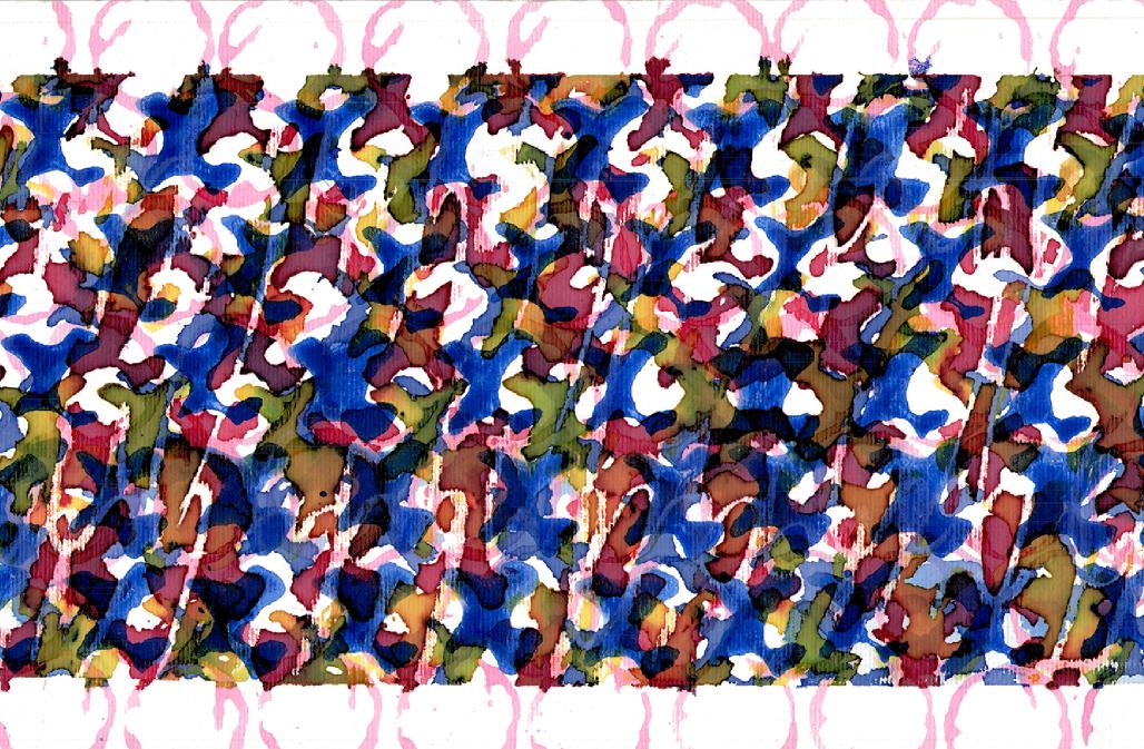 Paesaggi interiori sono, appunto, i dipinti di Raeli. Si tratta di griglie costruite con virgole di colore. Raeli utilizza colori dalla diversa consistenza – acrilici, pastelli e acquerelli – in modo che la loro sovrapposizione non copre ma anzi lascia trasparire le pennellate sottostanti. Le variazioni di dosaggio e le sovrapposizioni conferiscono alle opere una gamma molto ampia di colori e tonalità.