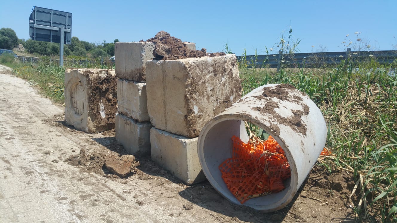 «Gli ingressi al cantiere sono rimasti aperti, con i new jersey in cemento buttati a terra, la rete metallica è ancora accatastata in un angolo in attesa che venga collegata nel sottofondo a copertura dello stesso e di una paratia laterale, le botole in ferro non sono state ancora collocate e invece al loro posto troviamo delle bellissime tavole di legno, i tubi in cemento, che dovrebbero condurre le acque piovane all’interno del canale Scandurra, sono ostruite da pali in legno che fanno bella mostra di sé e rischiano di impedire alle acque di defluire regolarmente verso valle, la pietra che dovrebbe nascondere la struttura in cemento armato in parte non è stata ancora posta, in altre parti è stata posta senza essere definitivamente incollata e le recinzioni, a monte del sottopasso, non sono adeguatamente messe in sicurezza, sicché qualsiasi bambino, adulto o animale potrebbe finire direttamente nel vallone».