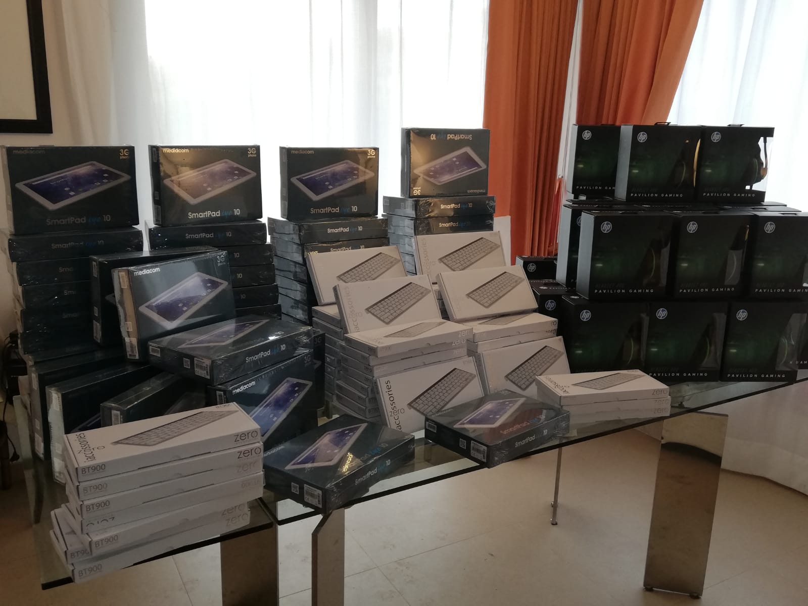 Per raggiungere questo obiettivo, grazie alla sensibilità e generosità della Fondazione Nando ed Elisa Peretti, sono stati acquistati e sono in corso di distribuzione oltre 100 tablet dotati di tastiera e cuffia per lo studio a distanza, 100 ricariche telefoniche, 10 computer portatili e 2 computer fissi.