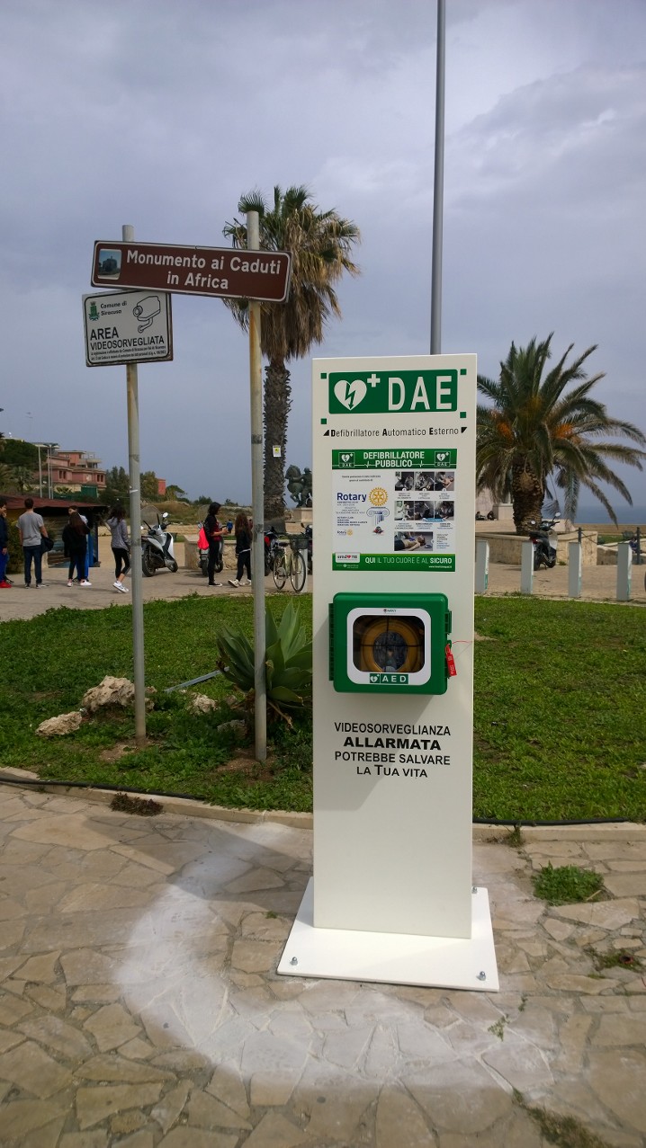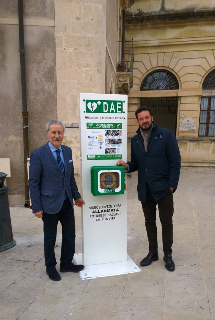 Il montaggio è stato seguito dal presidente del Rotary club Siracusa, Angelo Giudice, ed è avvenuto ad opera di due operai di un’azienda sponsor privata. Il progetto, denominato “Le colonne della vita”, è il frutto dalla collaborazione dei 5 Rotary club della provincia. Defibrillatori uguali, infatti, nei giorni scorsi sono stati donati anche a Noto e Pachino.