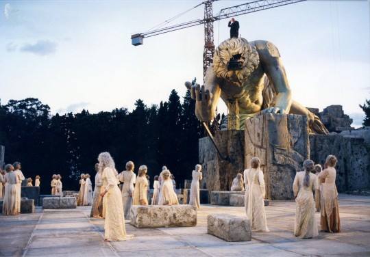 Ronconi non fu interessato ad una operazione di attualizzazione del Teatro Antico ma amava sondare la caduta di continuità, accostandosi ai capolavori della drammaturgia greca come ad uno “spaccato geologico”.