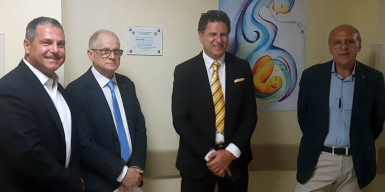 Ringraziamenti anche da parte del direttore del reparto Antonino Bucolo che ha spiegato l’utilità dell’apparecchiatura donata, la stazione materno/infantile wireless da interfacciare con i cardiotocografi che consentiranno con un sistema moderno e senza fili il monitoraggio dei battiti fetali alle gestanti. Come simbolo della donazione, accanto alla targa è stato affisso un quadro che simboleggia il dialogo tra la mamma ed il bambino in grembo.