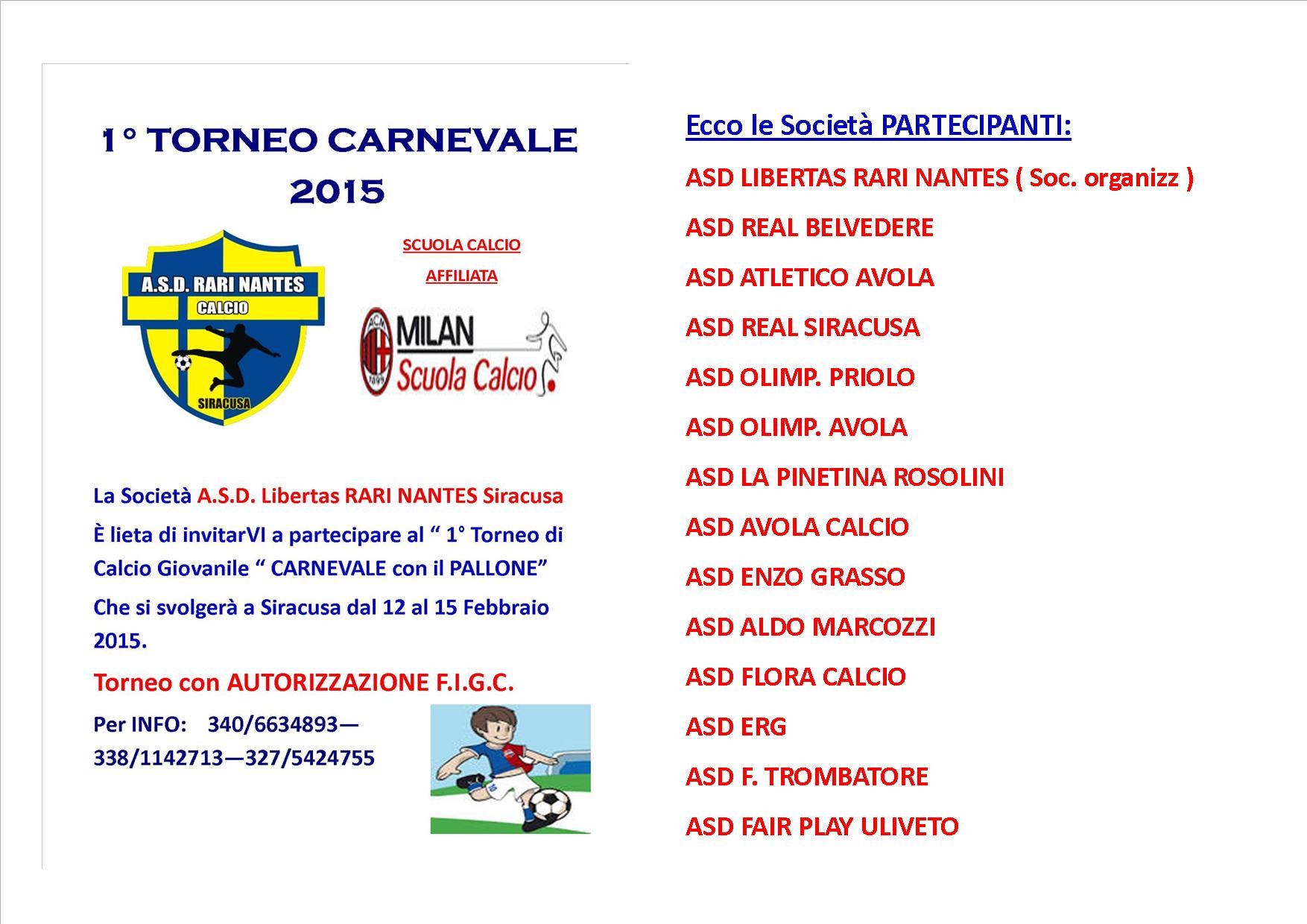 Sono questi i nomi delle squadre che parteciperanno al 1° Torneo di calcio giovanile “Carnevale con Pallone” organizzato dall’Asd Libertas Rari Nantes.