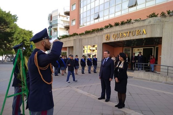 Siracusa. Questa mattina il Questore e il Prefetto, in occasione del 166° anniversario della fondazione della Polizia di Stato, hanno deposto una corona di fiori dinanzi la Stele in onore dei caduti della Polizia di Stato, che si trova presso l’ingresso della Questura, nel corso di una breve e sentita cerimonia che come di consueto rappresenta il prologo delle celebrazioni per l’anniversario della Fondazione della Polizia di Stato che si terranno alle ore 11.00, in Piazza Cavalieri di Malta.