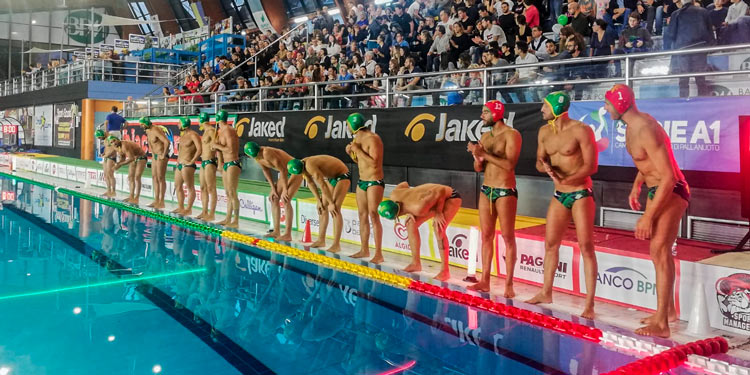 Gli uomini di Piccardo offrono una prestazione maiuscola sia sotto il punto di vista atletico sia del gioco. Dopo i primi minuti un po’ convulsi, soprattutto in fase d’attacco, con un doppio svantaggio un po’ sfortunato, i biancoverdi reagiscono e rispondono colpo su colpo, sfoderando una prova difensiva perfetta. La partita si mantiene in equilibrio a lungo, fino a quando, all’inizio del quarto tempo, Giacoppo inventa una beduina da standing ovation portando i suoi sull’8-6, mentre un grande Tempesti poco dopo para un rigore.