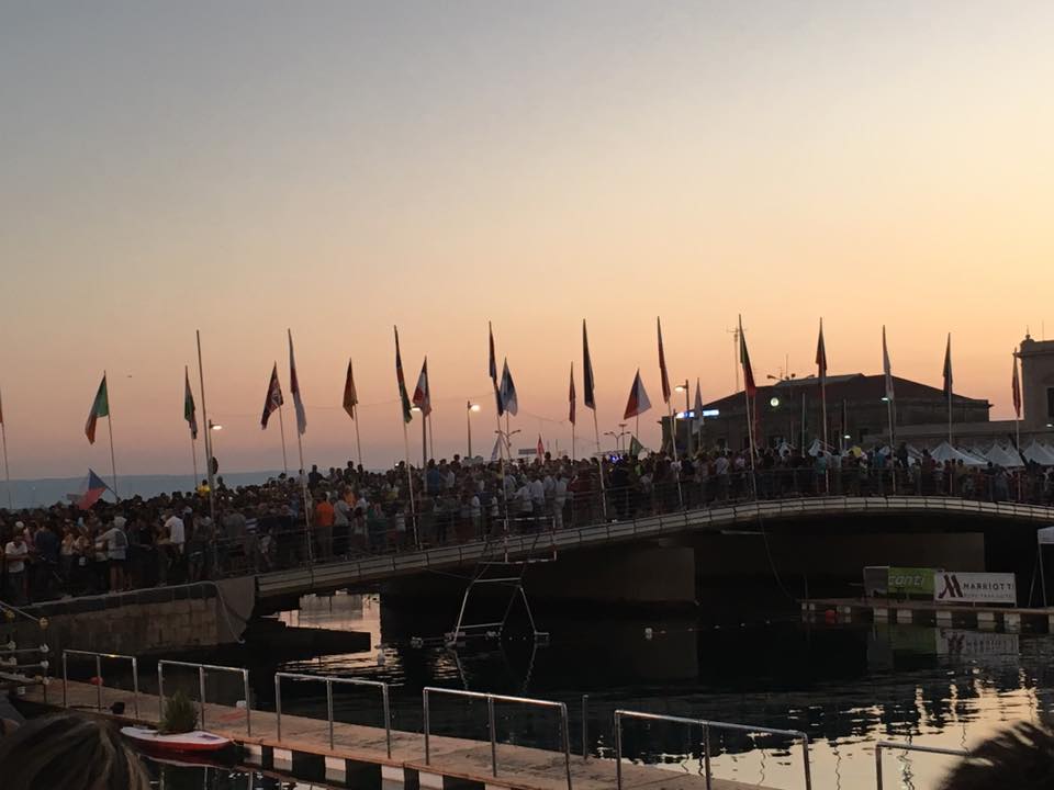 News Siracusa: per la cerimonia d’inaugurazione dei mondiali di canoa polo di Siracusa. Poco dopo le 19, il colorato corteo partito da piazzale Marconi ha attraversato corso Umberto per raggiungere l’arena mondiale tra i due ponti di Ortigia. Oltre 700 atleti in rappresentanza delle 28 nazioni in gara hanno sfilato ieri sera da piazzale Marconi fino all’arena allestita a ridosso dei due ponti di Ortigia, Santa Lucia e Umbertino. Ad accompagnarli migliaia di persone che hanno affollato l’ingresso di Ortigia con un colpo d’occhio straordinario.Tra le autorità l’on.le Prestigiacomo, autorità militari, i consiglieri Burti e Foti, il presidente del consiglio comunale, Il Prefetto e il Questore. Alle 19.38 il tricolore fa il suo ingresso al ponte Santa Lucia scortato dai 6 campioni aretusei (leggi qui).
