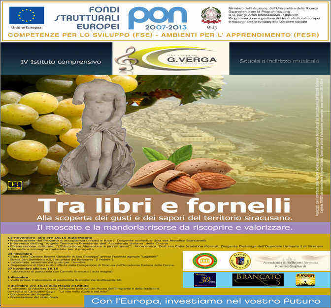 News Siracusa: “Tra libri e fornelli: alla scoperta dei gusti e dei sapori del territorio siracusano. la mandorla e il Moscato: risorse da conoscere e valorizzare”. E’ il titolo del Progetto di Educazione Permanente (finanziato dall’Assessorato ai Beni Culturali della Regione Siciliana) del 4° Istituto Comprensivo “Giovanni Verga” di Siracusa, premiato dal Comitato Scientifico del Premio Basile per la Formazione nella P.A. 2015.