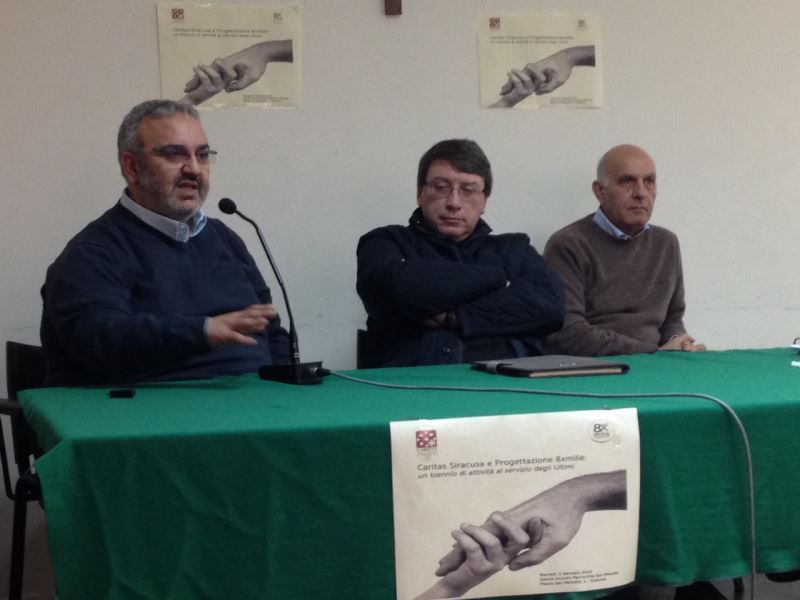 Il direttore della Caritas diocesana, Filippo Villaruel, ha ricordato il punto di partenza, il progetto Rifondiamoci, per raccogliere dati ed analizzare nuove povertà: “Il 2013 è stato per la Caritas diocesana di Siracusa un anno cruciale in quanto ha avuto inizio una programmazione strutturata rivolta agli ultimi, alle fasce deboli, ai soggetti vulnerabili, ai poveri in generale; ma anche ai volontari, che operano in ambito caritativo a livello parrocchiale e diocesano. Nella definizione di tale percorso, si è tenuto conto, partendo da uno studio attento e capillare del territorio, sia delle difficoltà afferenti alle vecchie povertà radicate nel territorio, sia delle difficoltà riferite alle nuove ed emergenti povertà. Punto di partenza è stato il Progetto Fondo CEI 8xmille Italia 2013 Rifondiamoci, co-finanziato dall’Arcidiocesi di Siracusa. Il progetto ha permesso la creazione di quattro Centri d’ascolto (Ortigia, Casa della Carità, San Metodio, Mazzarrona), eroganti servizi specifici di accompagnamento, sostegno al reddito, orientamento, consulenza, supporto psicologico e relazionale. I volontari impegnati sono stati 45. Tutti questi dati ci hanno permesso di preparare una progettazione nuova nell’ambito della dispersione scolastica, per incrementare l’ascolto delle persone nel Vicariato di Lentini, Carlentini e Francofonte; puntare al progetto “immigration start up”, che sarà vissuto nel territorio; infine il bazar della solidarietà”.