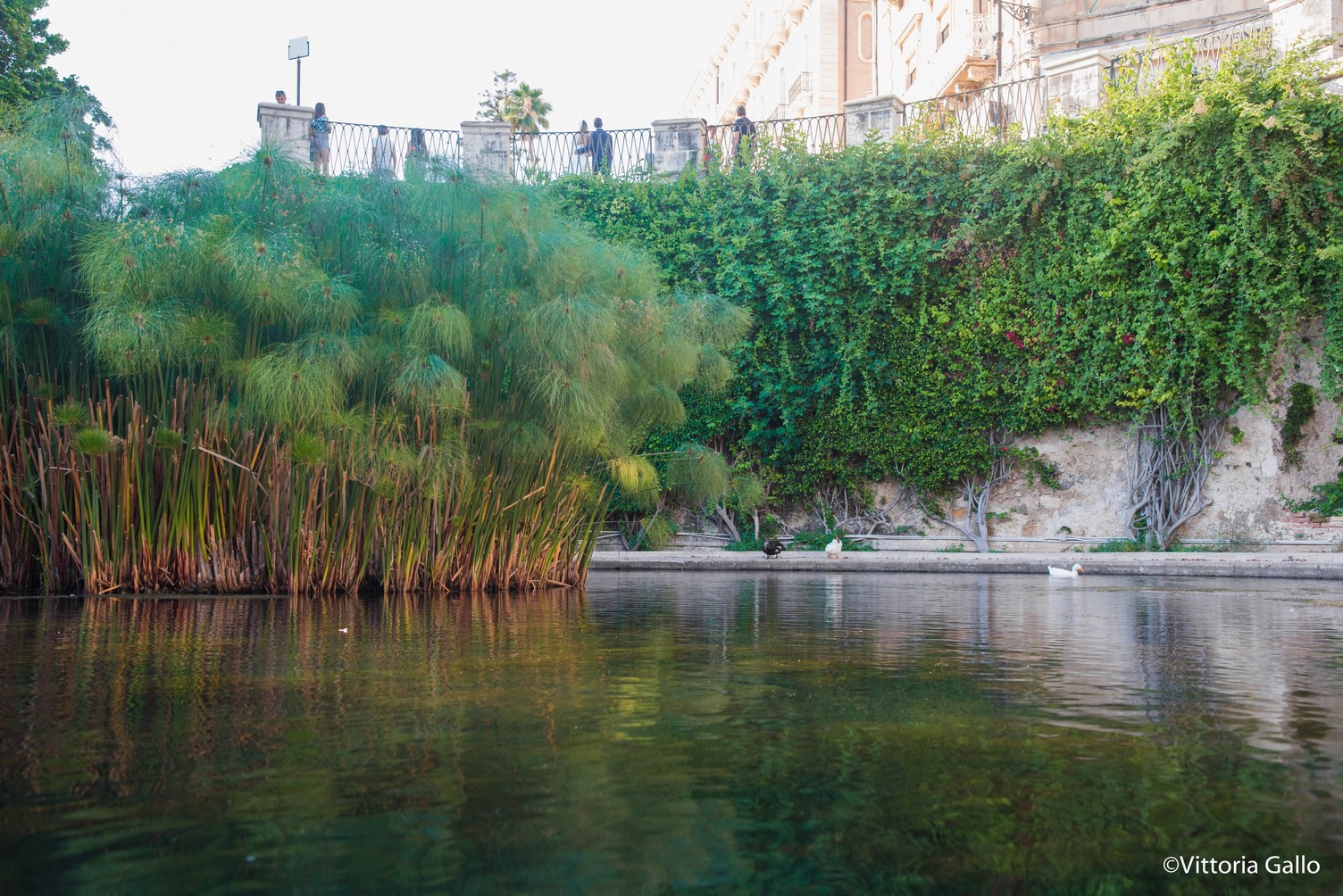 La Fonte ospita da millenni branchi di pesci un tempo sacri alla dea Artemide e, da tempi più recenti, una fiorente colonia di piante di papiro e alcune simpatiche anatre che le valgono il nomignolo affettuoso con cui i Siracusani di oggi talvolta la chiamano, funtàna de’ pàpere.