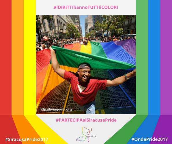 News Siracusa: in occasione del Siracusa pride 2017, che si terrà il 13, 14 e 15 luglio, il comitato Pride lancia la campagna di sensibilizzazione fotografica #PARTECIPAalSiracusaPride2017. Chiunque volesse partecipare al Siracusa Pride potrà liberamente inviare alla pagina del Siracusa pride 2017, nella piattaforma facebook, una propria fotografia inserendo una frase, nella quale potrà spiegare le proprie motivazioni alla partecipazione del Siracusa pride 2017 e noi incorniceremo la foto.