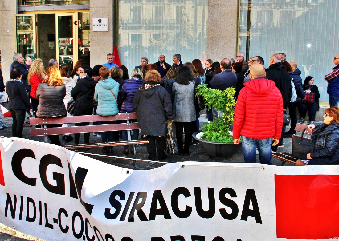 News Siracusa: i lavoratori precari della scuola scendono in piazza contro la “sparizione” delle risorse economiche annunciate dal Miur, destinate alla loro stabilizzazione occupazionale. La protesta degli Lsu, organizzata dal Nidil, si è svolta questa mattina davanti alla Prefettura, sede istituzionale dove i rappresentanti sindacali hanno consegnato al rappresentante di governo un documento con cui si sintetizzano gli anni di attesa dei precari della scuola, nonostante i decreti legge sulla loro stabilizzazione. A fianco dei lavoratori, questa mattina, oltre al segretario provinciale del Nidil, Pippo Leone, c’era anche il coordinatore regionale Nidil, Giuseppe Oliva, nonché il segretario generale della Cgil di Siracusa, Roberto Alosi. <<E’ da Siracusa che parte la protesta che sarò a carattere nazionale>>, spiegano Oliva, Leone e Alosi <<perché qui sono ben 150 i precari della scuola, a fronte dei circa 900 in tutto il territorio nazionale; stiamo parlando di una concentrazione particolarmente elevata, ovviamente frutto di una politica malsana che ha giocato sulla pelle dei lavoratori>>.