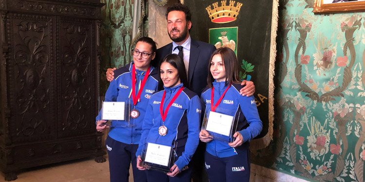 News Siracusa. Il sindaco Francesco Italia ha ricevuto e premiato oggi, nello studio verde di palazzo Vermexio, le atlete siracusane vincitrici di due ori e un bronzo al recente torneo internazionale di boxe “Sofya Ochigava” di Mosca.