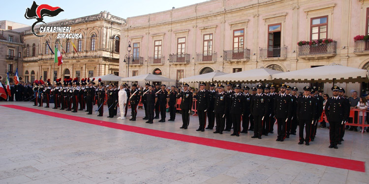 La manifestazione ha avuto inizio alle 17.30, articolandosi in una fase militare, durante la quale sono stati schierati una Compagnia del Comando Provinciale composta da militari in Grande Uniforme, comandanti di Stazione, Carabinieri in servizio presso l’Aeronautica Militare, Specialisti nei rilievi tecnici e repertamento del Reparto Operativo, motociclisti ed equipaggi del Pronto Intervento della Sezione Radiomobile della Compagnia di Siracusa e militari premiandi, oltre a una rappresentanza dell’Associazione Nazionale Carabinieri e delle altre Associazioni Combattentistiche e d’Arma con rispettivi Labari, fra cui quello del Libero Consorzio Comunale e della Città di Siracusa, una rappresentanza di infermiere volontarie della Croce Rossa Italiana e la Banda municipale di Siracusa.