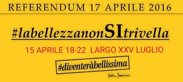 Collateralmente all’evento che si terrà presso Largo XXV Luglio, il Meetup Siracusa ha organizzato, stasera dalle ore 19.00 in piazza Duomo, un Flash Mob per dire “Si” al referendum contro le trivellazioni in mare.