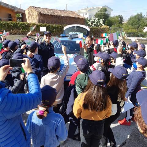 Emozionante e significativa è stata l’accoglienza che i bimbi del plesso centrale e del plesso “Forlanini” hanno riservato ai Poliziotti, salutandoli con lo sventolio di bandierine tricolore, da loro stessi confezionate, e con biglietti con su scritto “W la Polizia di Stato”.