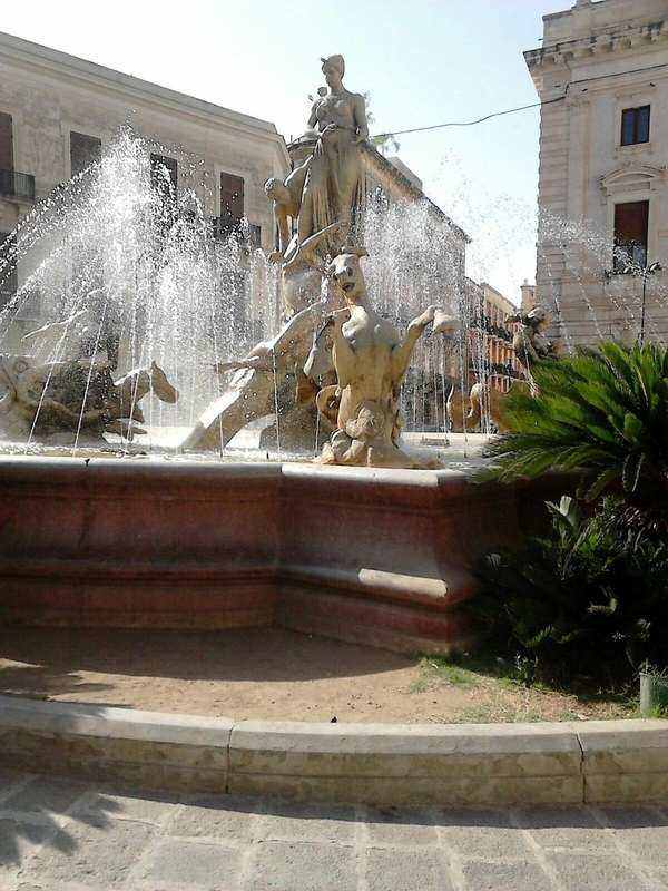 Uno dei simboli di Siracusa, vista e fotografata dai turisti ogni giorno. La fontana è rivolta a sud e mette in evidenza la figura di Diana con arco e cane, gli attributi della dea della caccia, protettrice di Ortigia in epoca greca. Ai suoi piedi c’è Aretusa che si allunga mentre è in atto la trasformazione in fonte. A lato Alfeo stupefatto per ciò che sta avvenendo alla sua amata. In secondo ordine, all’interno della vasca troviamo quattro Tritoni che accalcano due cavalli marini e due pistrici impennati sulle onde. La vasca fine presenta alcuni mascheroni e stemmi ricalcando uno stile classico delle forme.