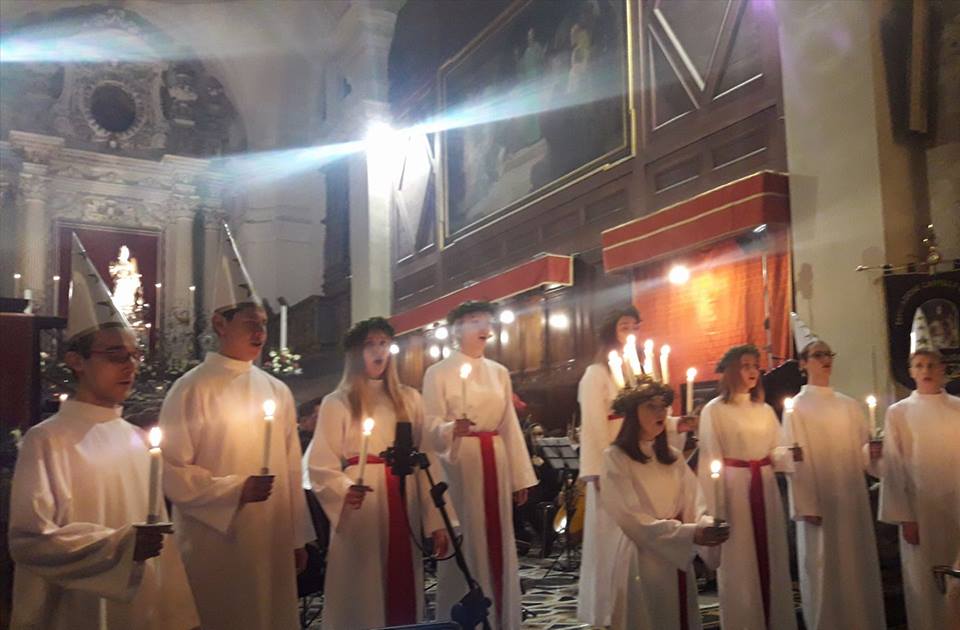 Momento clou della serata, il concerto corale del Liceo Musicale Nordiska Musikgymasiet di Stoccolma e del Liceo Musicale “T. Gargallo” di Siracusa, presso l’altare maggiore della cattedrale, ai piedi dell’argenteo simulacro, alla presenza dell’ambasciatore svedese in Italia, Robert Rydberg riaccendendo di fatto il legame fra la comunità svedese e quella siracusana nel nome della vergine e martire Lucia. Presente anche il vicesindaco Francesco Italia, l’arcivescovo Pappalardo insieme all’arcivescovo di Bari, Cacucci e il presidente della Deputazione della Cappella di Santa Lucia, Pucci Piccione.