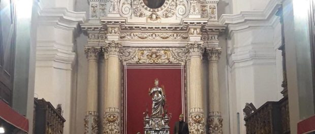 Siracusa. Alla vigilia della Festa della Santa Patrona, Santa Lucia, questa mattina si è svolta l’attesa traslazione del simulacro argenteo in Cattedrale dalla cappella all’Altare maggiore. Una gremita grande folla di fedeli e portatori, riuniti tutti in Cattedrale per rendere omaggio a Santa Lucia, a poche ore ormai dalla processione tra le vie di Siracusa.