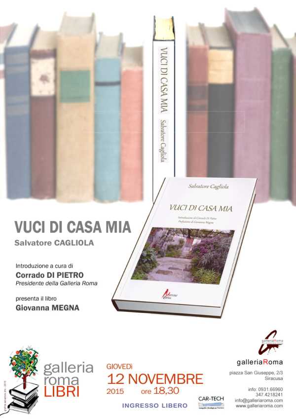 News Siracusa: sarà presentato domani, presso la Galleria Roma, alle 18.30 “Vuci di casa mia” di Salvatore Cagliola. Il libro sarà presentato da Giovanna Megna che ha curato la prefazione, mentre l’evento sarà introdotto dal Presidente di Galleria Roma, Corrado Di Pietro.