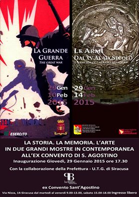 News Siracusa: saranno inaugurate giovedì alle ore 17.30 presso l’ex convento di Sant’Agostino, le mostre: “La grande Guerra” e “Le armi: dal XV al XIV”.