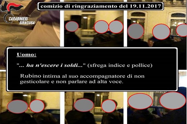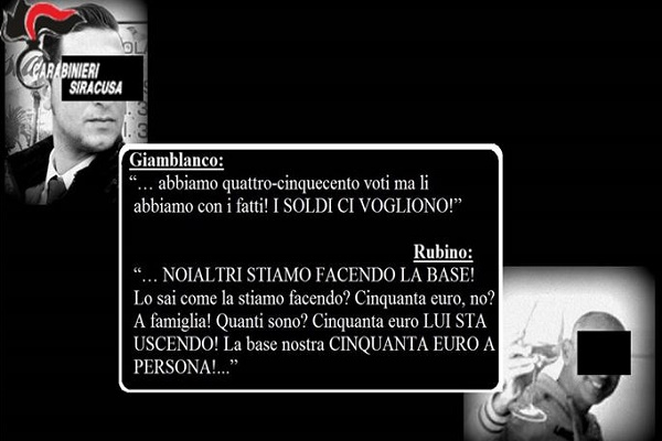 L’indagine, condotta dal Nucleo Investigativo dei Carabinieri dall’ottobre al dicembre 2017, ha evidenziato che in occasione delle elezioni del Presidente e dei deputati dell’Assemblea Regionale Siciliana tenutesi il 5 novembre 2017, Giamblanco, esponente del Clan Crapula attivo nel territorio di Avola e genero del capo clan Crapula Michele, prometteva di procurare voti in cambio dell’erogazione di denaro e di altre utilità. Gennuso accettava la promessa mentre Rubino si poneva quale intermediario tra le parti ed esecutore dell’accordo. Al termine della contesa elettorale il deputato Gennuso otteneva la rielezione per un nuovo mandato.