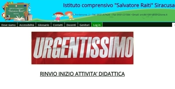 News Siracusa: “urgentissimo”. Si legge a caratteri cubitali nel sito dell’istituto comprensivo “Salvatore Raiti” di Siracusa. L’annuncio che riguarda il rinvio dell’attività didattica per “motivi di sicurezza” dopo un sopralluogo dell’ufficio tecnico del Comune di Siracusa. Da domani, operai domani al lavoro all’Istituto comprensivo per rimuovere dal tetto l’intonaco che rischia di cadere. La notizia è stata data stamattina al Consiglio di istituto dall’assessore alle Politiche scolastiche, Valeria Troia, che ha confermato l’impegno del Comune a intervenire col sistema della somma urgenza per consentire al più presto la ripresa delle lezioni in tutta sicurezza. Sempre di oggi, la denuncia del consigliere comunale e capogruppo di Oppposizione, Cetty Vinci, la quale ha commentato come “incresciosa” la notizia del rinvio dell’apertura alla scuola Raiti (leggi qui).