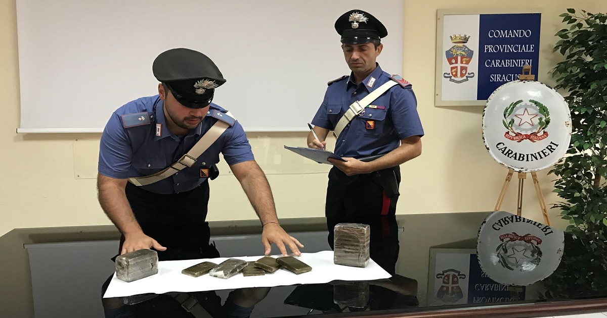 News Siracusa. Nell’arco della nottata i Carabinieri del Nucleo Operativo e Radiomobile della Compagnia di Siracusa, hanno tratto in arresto in flagranza di reato un uomo ed una donna, sorpresi a viaggiare a bordo di un auto con 2 chilogrammi di Hashish divisi in 20 panetti da 100 grammi ciascuno.