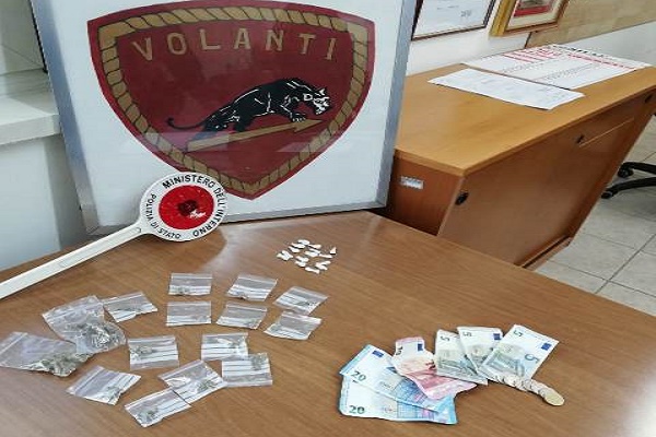 Gli uomini delle Volanti hanno bloccato l’arrestato in Via Italia e lo hanno sorpreso in possesso di 7,9 grammi di cocaina, suddivisa in 15 dosi e di 19,5 grammi di marijuana, suddivisa in 15 dosi. L’uomo, dopo le incombenze di rito è stato posto agli arresti domiciliari.