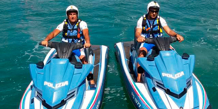 Le potenti moto d’acqua, prive di eliche, con una cilindrata di 1800 cc. e oltre 200 cavalli di potenza, costituiscono un utile strumento volto a scoraggiare anche il perpetrarsi di reati a danno dei bagnanti per consentire una serena e sicura fruizione delle spiagge attrezzate e libere.